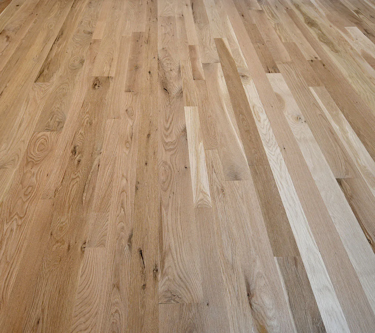 Euro White Oak flooring is a premium hardwood flooring option known for its elegant grain, wide plank format, and natural character. Its tighter grain and higher tannin content compared to domestic oak allow for deeper finishes and a more refined look. Often favored in modern and transitional interiors, Euro Oak offers consistent tone with occasional knots and mineral streaks that enhance its organic appeal.